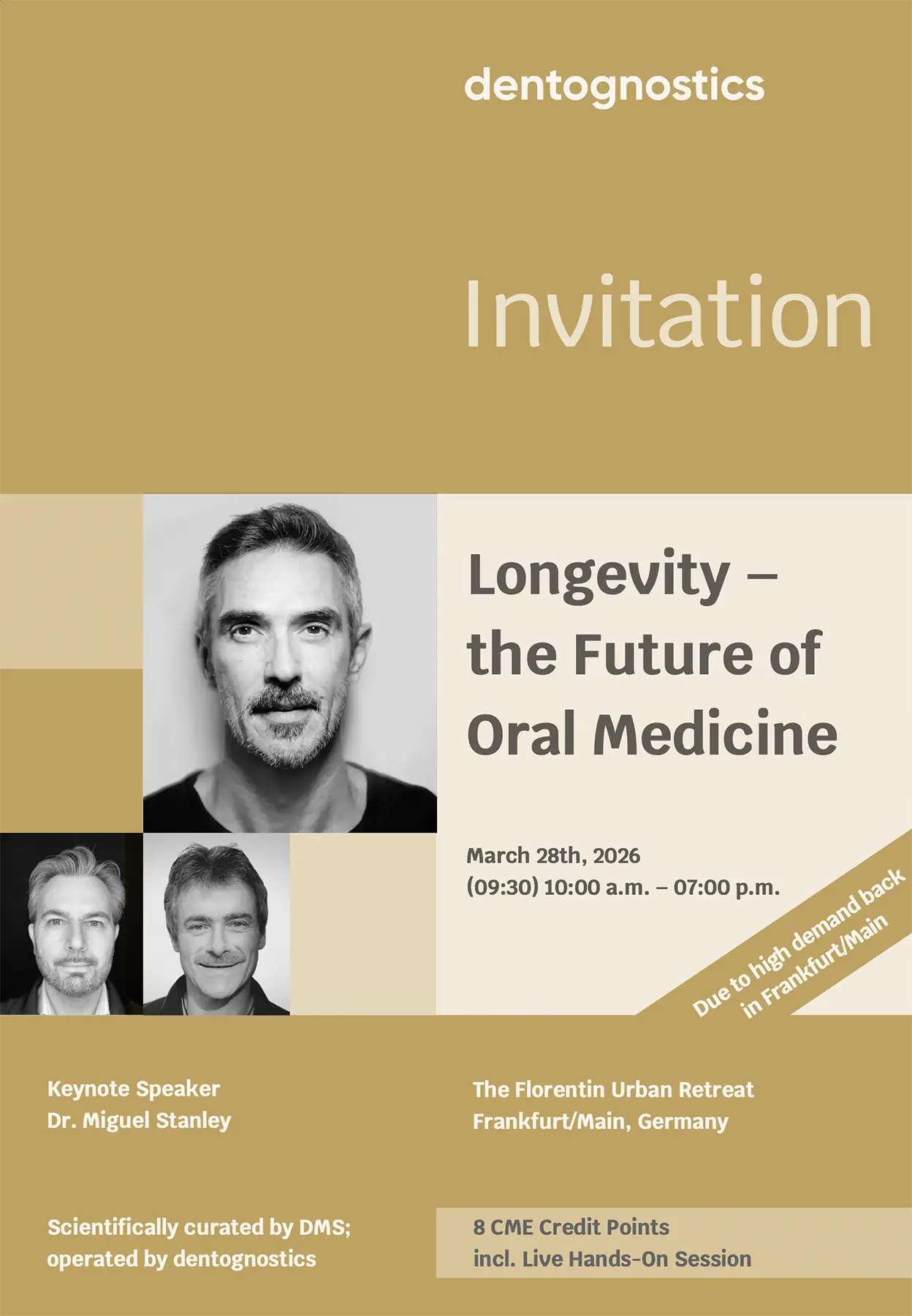 Die dentognostics GmbH ist Entwickler und Hersteller der aMMP-8-Technologie – der weltweit führenden, prädiktiven Biomarker-Technologie für die Früherkennung von Kollagen-Abbauprozessen im Körper, speziell im Mund. Versteckte orale Entzündungen verursachen subklinischen und damit nicht-sichtbaren Kollagenabbau. Rechtzeitig und personalisiert angewendete Prävention, Dentalhygiene und Therapie können diesen Prozess verhindern bzw. stoppen. Die aMMP-8-Technologie ist daher hervorragend geeignet für die Früherkennung, Patientenkommunikation, Awareness und Verlaufskontrolle therapeutischer Maßnahmen und Präventionsmaßnahmen, weil sie das Unsichtbare sichtbar macht.