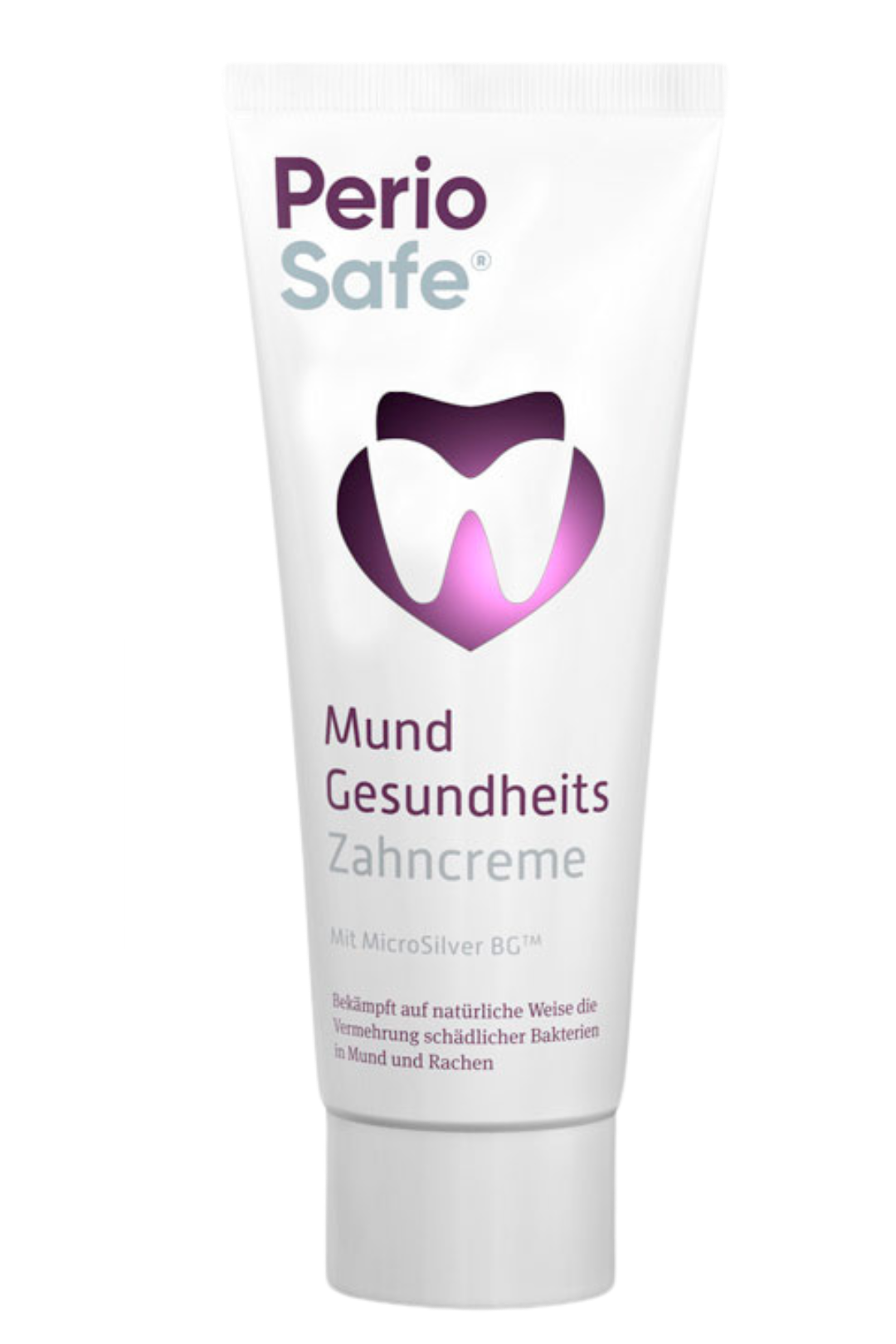 PerioSafe® Mundgesundheits-Zahncreme mit antiviraler, antimikrobieller und antibakterieller Wirkung durch MicroSilver BG™ hemmt die Plaque-Neubildung bis zu 12 Stunden. Das Provitamin Panthenol unterstützt die Regeneration des Zahnfleisches; Zinkglukonat wirkt zusätzlich antibakteriell und entzündungshemmend. Natriumfluorid härtet den Zahnschmelz und reduziert das Kariesrisiko. Die Zahncreme enthält kein Titandioxid.