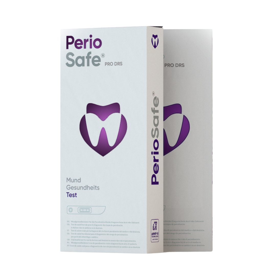 Der quantitative PerioSafe® PRO DRS-Test dient dem Screening von Präventionspatienten und misst die aMMP-8-Konzentration im Speichel (CSF) über ein Speichelprobe.