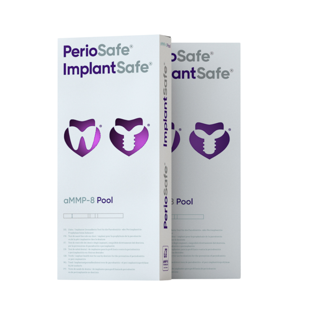 Der quantitative PerioSafe® ImplantSafe® POOL DR-Test dient dem Screening und Monitoring von PA-bzw. PI an bis zu 4 Implantaten bzw. Zähnen und misst misst die aMMP-8-Konzentration im PISF oder GCF über Sekret aus den Zahnfleischtaschen (Sulkusflüssigkeit).