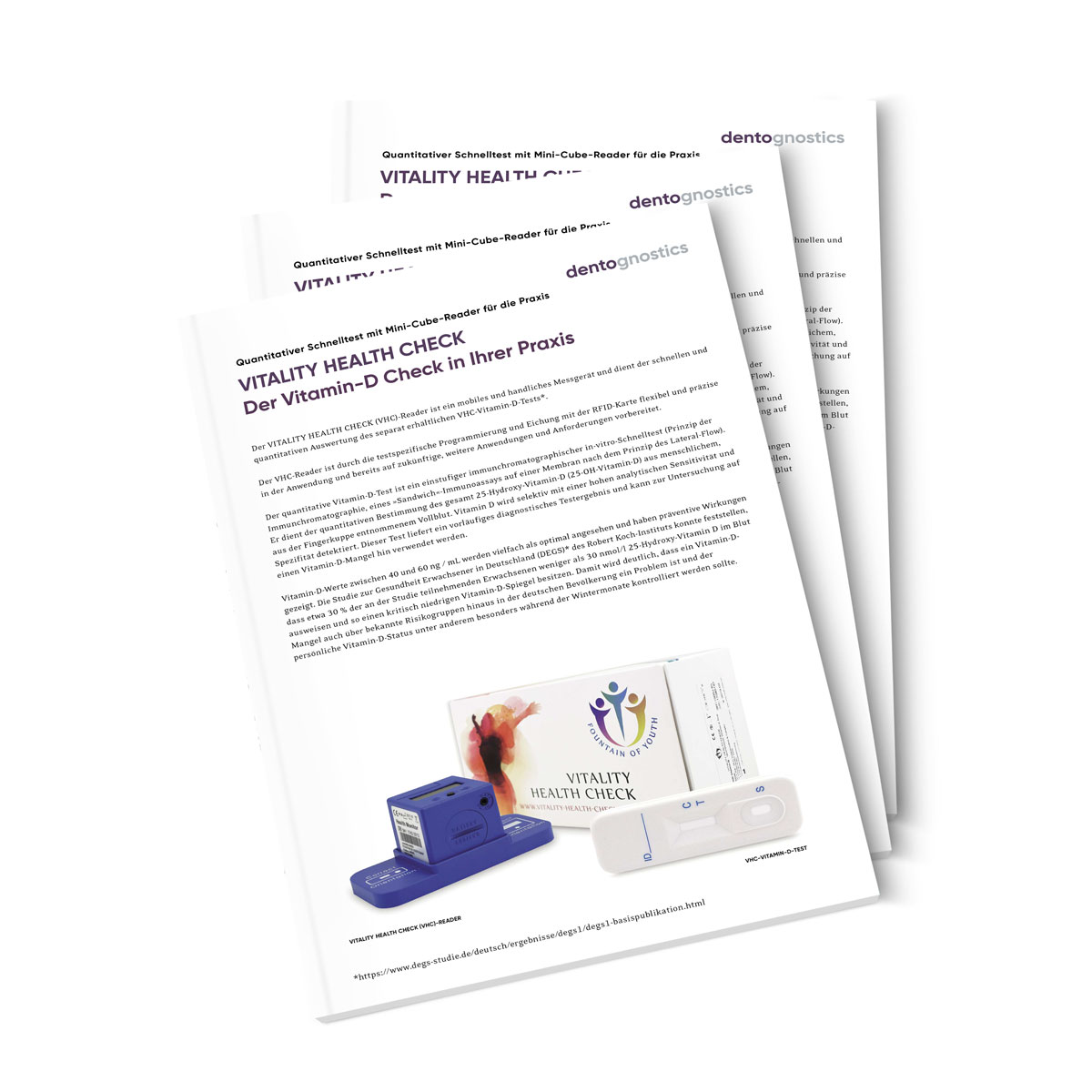 Der quantitative Vitamin-D-Test ist ein einstufiger immunchromatographischer in-vitro-Schnelltest (Prinzip der Immunchromatographie, eines »Sandwich«-Immunoassays auf einer Membran nach dem Prinzip des Lateral-Flow). Er dient der quantitativen Bestimmung des gesamt 25-Hydroxy-Vitamin-D (25-OH-Vitamin-D) aus menschlichem, aus der Fingerkuppe entnommenem Vollblut. Vitamin D wird selektiv mit einer hohen analytischen Sensitivität und Spezifität detektiert. Dieser Test liefert ein vorläufiges diagnostisches Testergebnis und kann zur Untersuchung auf einen Vitamin-D-Mangel hin verwendet werden.